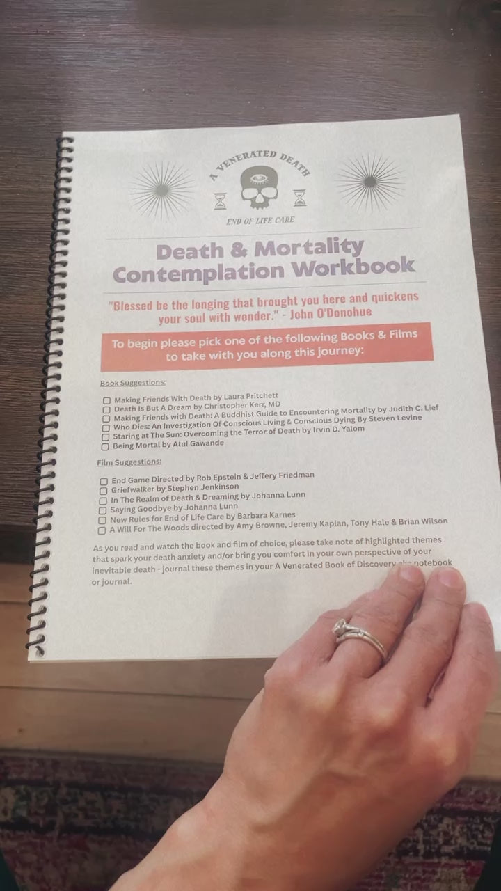 The Death & Mortality Workbook is a compilation of activities, journaling and deep contemplation that are meant to shift and challenge your beliefs and perspectives regarding your own inevitable death.