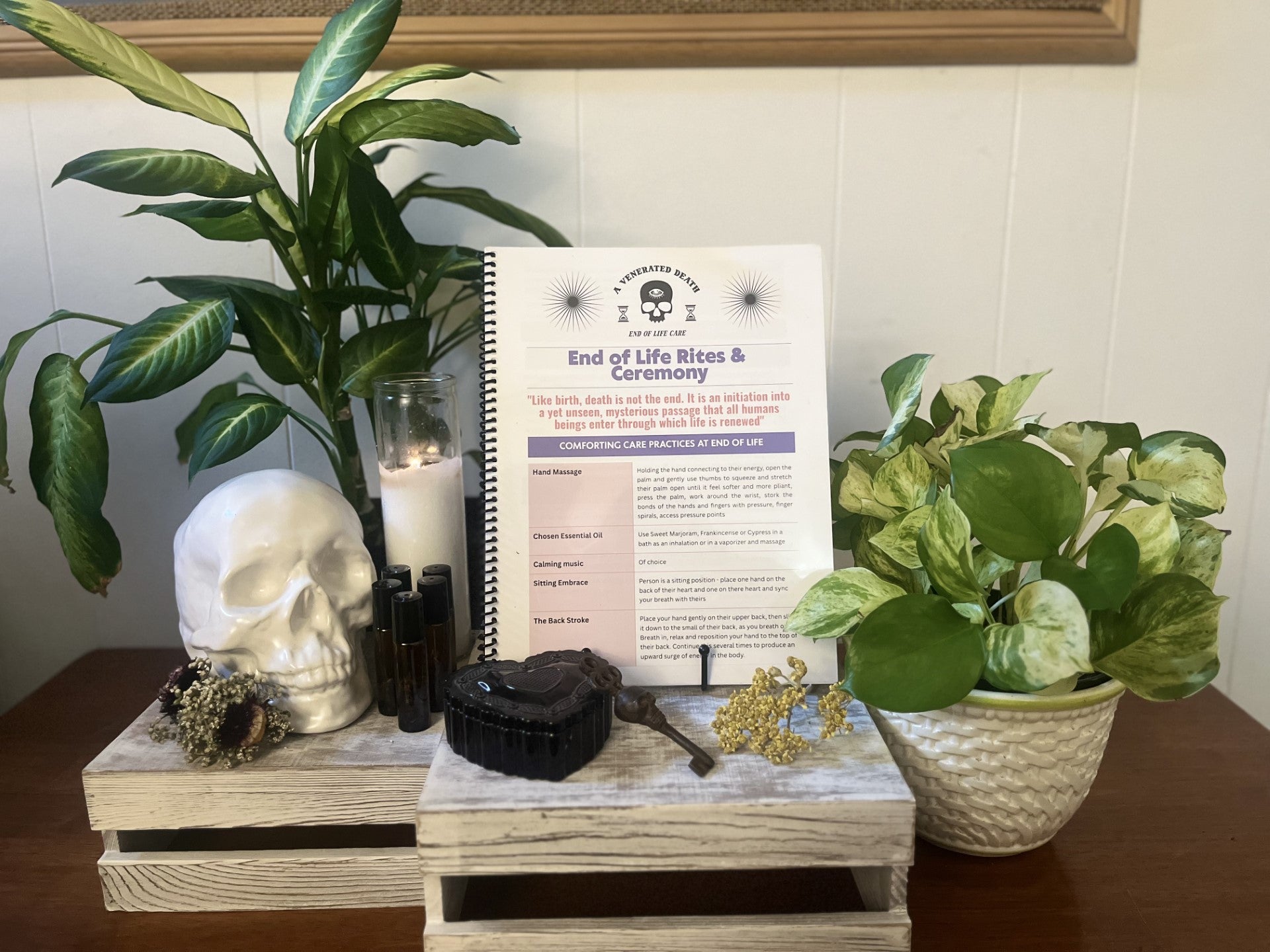 This booklet includes an End Of Life Ritual Roller Bottle created by @thedeathwitch and is used to anoint and honor loved one in there final days.