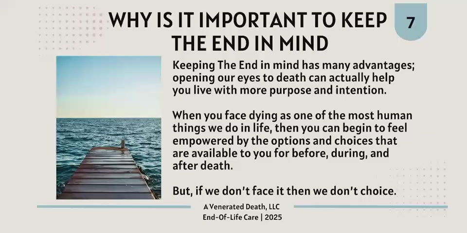 During this prerecorded 60 minute Live Zoom we will dive deep into what matters most at End-of-Life, learn how to's on decision and choice making for yourself and your loved ones all the while feeling empowered to lead this inevitable and important part of life in a heart-centered and intuitive way.