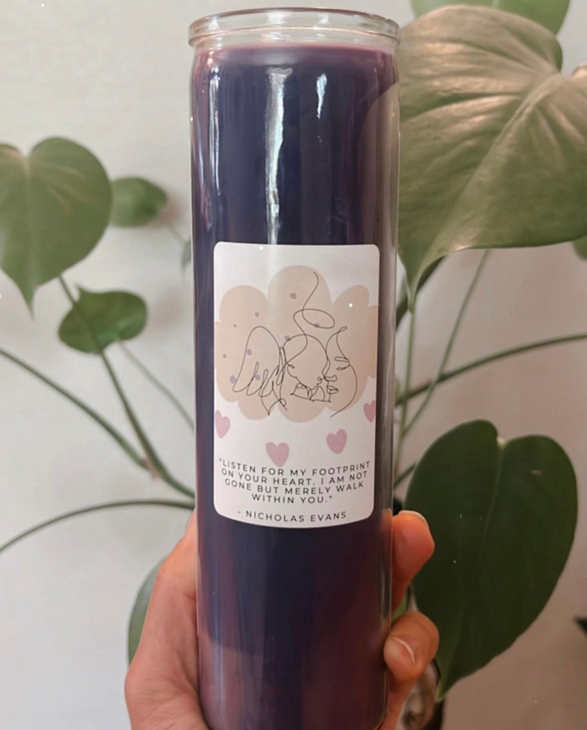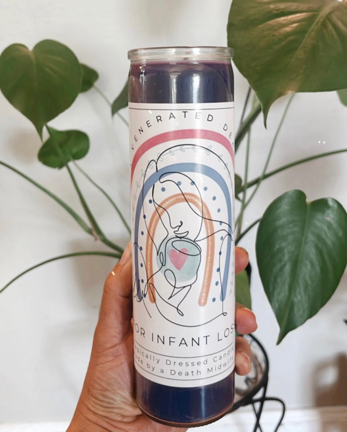 Death comes in many forms and these sacred death spaces of infant loss need support, a loving presence and honoring as well. This candle was made for and with the intention.